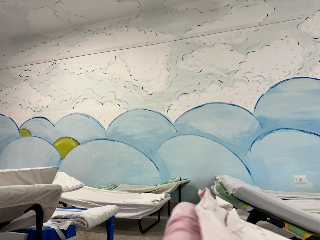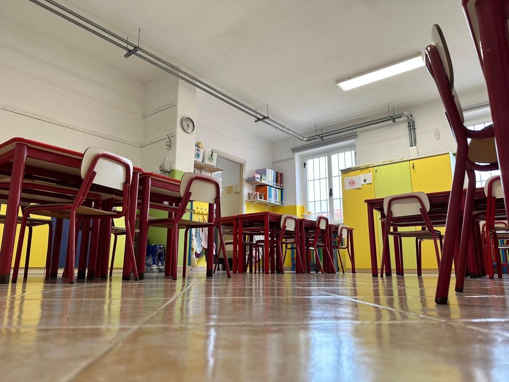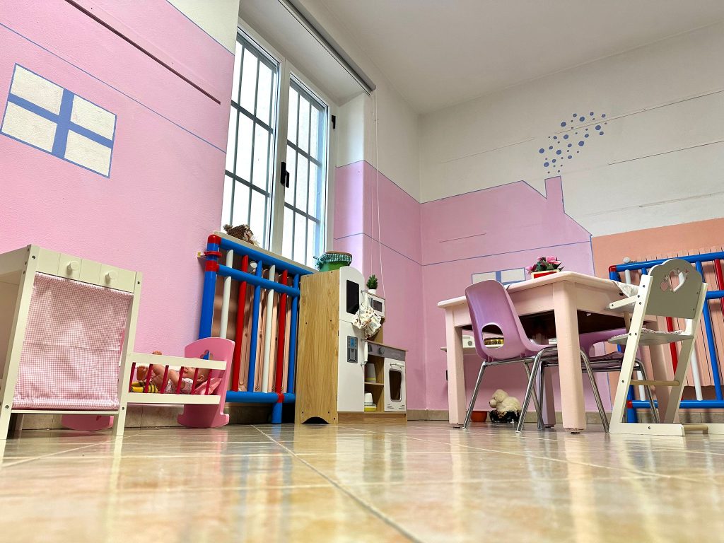 Lo spazio della scuola d’infanzia consiste in quattro aule per le singole sezioni, con relativi servizi igienici.